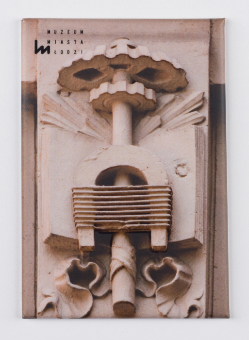 Magnes z ozdobnym elementem elewacji Pałacu Rodziny Poznańskich. Rzeźba przedstawia elektromagnes z otwartą książką w tle, jest to symbol postępu technicznego i wiedzy.