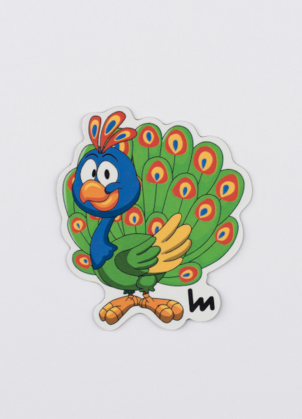 Magnes z wizerunkiem Pawia Pafnucego, maskotki inspirowanej jednym z najbardziej charakterystycznych eksponatów w Muzeum Miasta Łodzi – rzeźbie pawia w Wielkiej Sali Jadalnej.